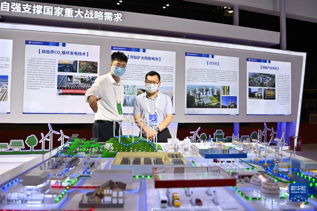 9月3日,在2022中國(太原)國際能源產(chǎn)業(yè)博覽會(huì ),參展商在格盟國際能源有限公司的展廳內交流。新華社記者 楊晨光 攝