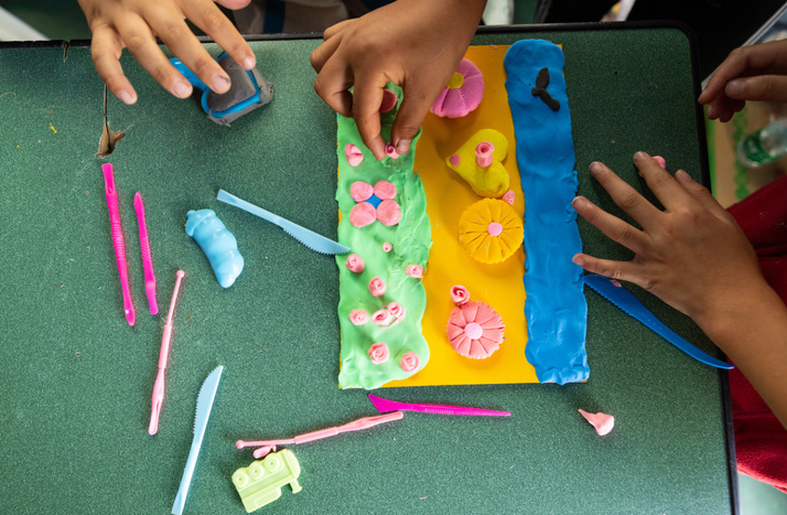 9月10日,在瀘定二中臨時(shí)安置點(diǎn)的“帳篷課堂”里,孩子們用橡皮泥制作創(chuàng )意“月餅”。新華社記者 沈伯韓 攝