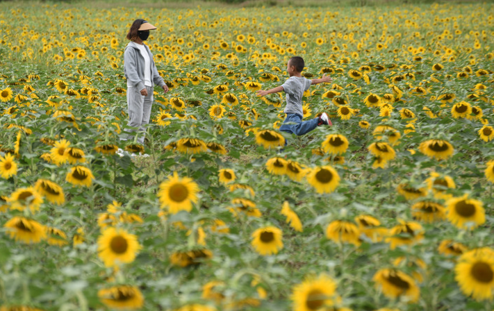 9月11日,游人在云南省麗江市古城區開(kāi)南街道的向日葵花海里游玩。新華社發(fā)(趙慶祖攝)