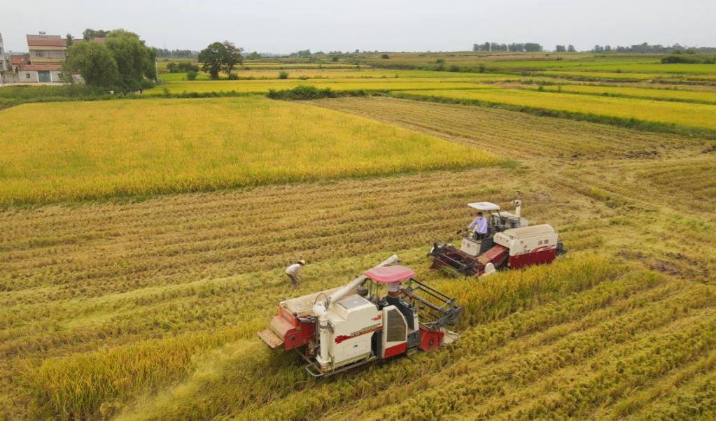 湖北襄陽(yáng)市襄州區黃龍鎮黃溝村的千畝稻田陸續開(kāi)始收割。(受訪(fǎng)者供圖)