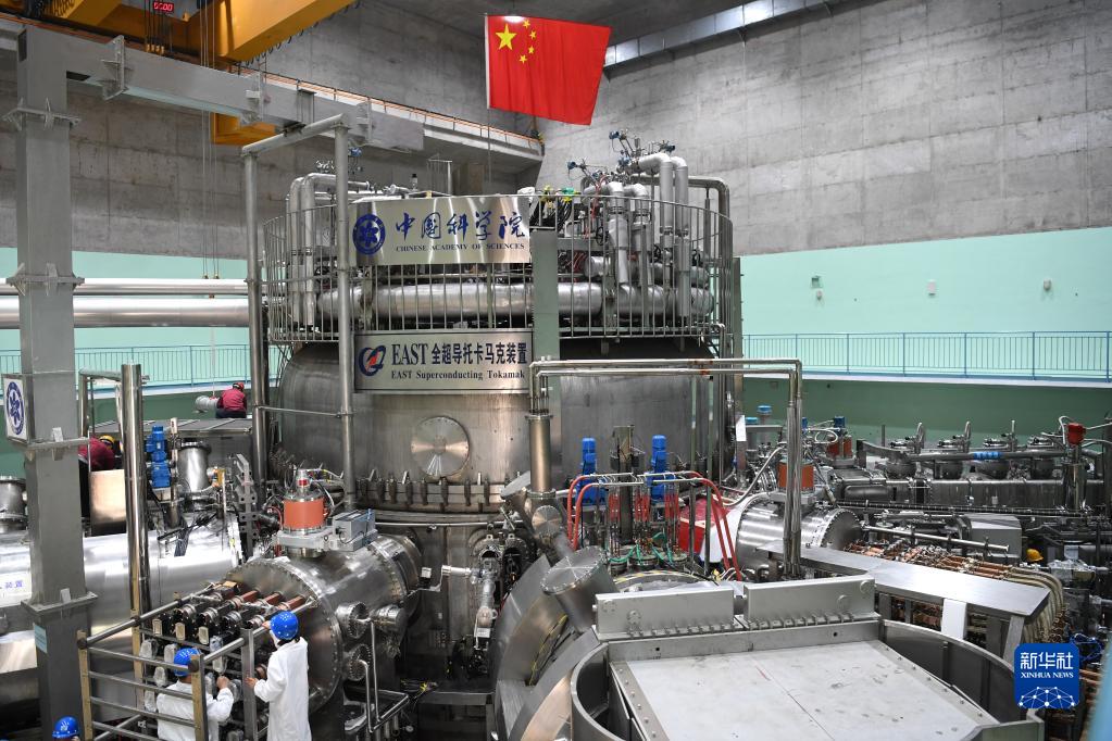 在中科院合肥物質(zhì)科學(xué)研究院,工作人員對有“人造太陽(yáng)”之稱(chēng)的全超導托卡馬克核聚變實(shí)驗裝置(EAST)進(jìn)行升級改造(2021年4月13日攝)。新華社記者 劉軍喜 攝