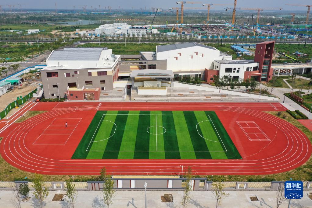 史家胡同小學(xué)雄安校區項目操場(chǎng)(2022年8月17日攝,無(wú)人機照片)。 新華社記者 朱旭東 攝