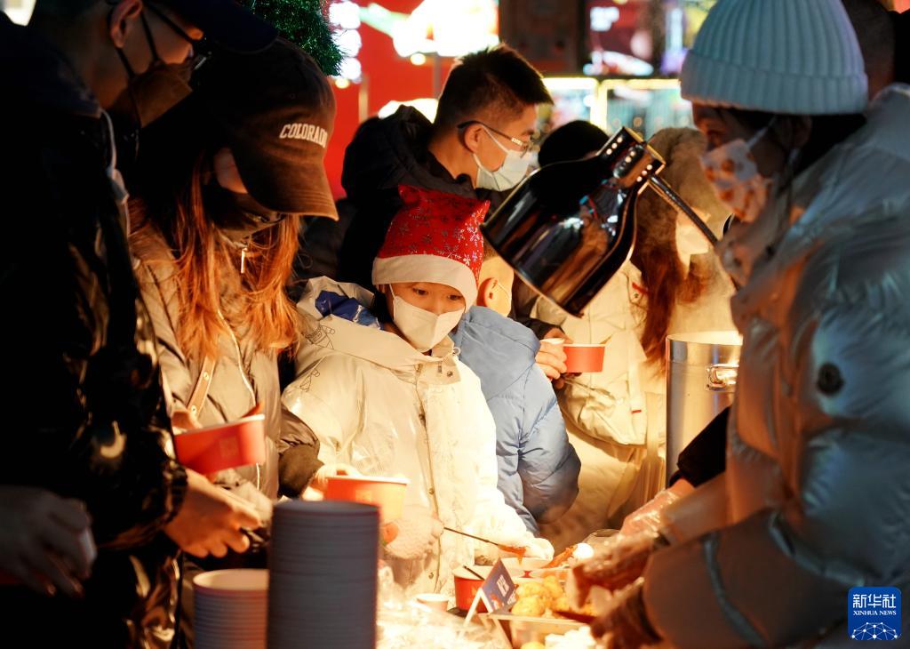 人們在北京五棵松華熙Live挑選美食(2022年12月25日攝)。新華社記者 張晨霖 攝