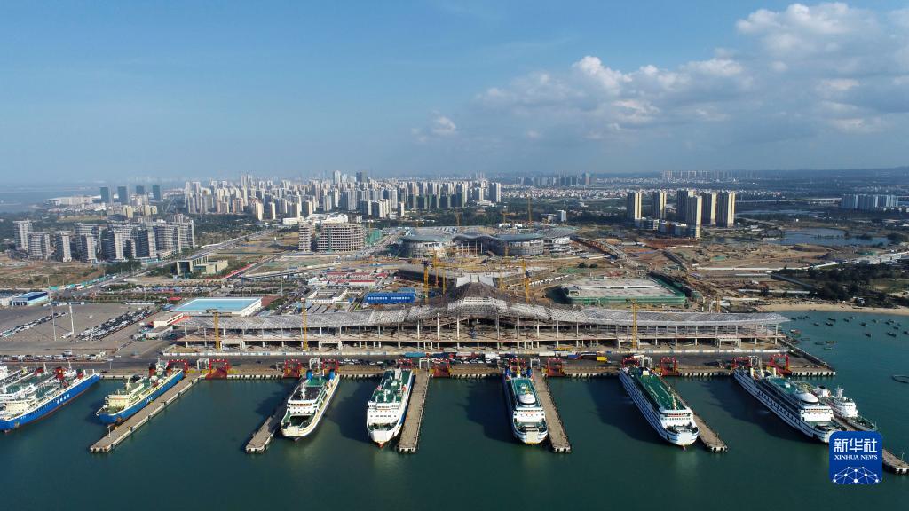 這是2022年2月11日拍攝的??谛潞8劭瓦\綜合樞紐項目施工現場(chǎng)(無(wú)人機照片)。新華社發(fā)(黎多江 攝)