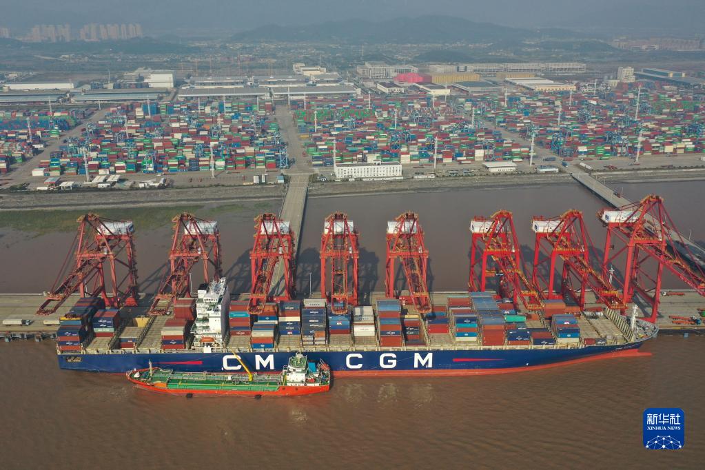 2022年12月13日,貨輪??吭谡憬瓕幉ㄖ凵礁勖窎|碼頭(無(wú)人機照片)。新華社記者 黃宗治 攝