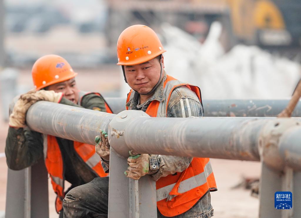 1月23日,工人在重慶兩江新區新能源汽車(chē)產(chǎn)業(yè)園基礎設施配套項目現場(chǎng)進(jìn)行鋼結構材料拼裝作業(yè)。新華社記者 劉潺 攝