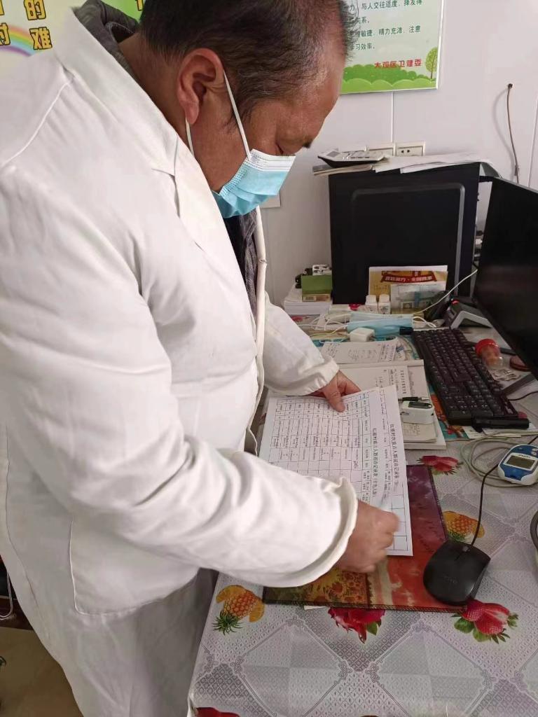 在紅星村,甘攀峰和村“兩委”同志一起,對全村1000多戶(hù)居民的健康狀況進(jìn)行了梳理,為57名需重點(diǎn)關(guān)注健康狀況的村民建立了“健康臺賬”?!拔覀兏鶕挲g和患基礎病情況,對重點(diǎn)人群進(jìn)行紅色、黃色標識登記,每3天上門(mén)一次給他們檢查血壓、血糖和血氧等?!备逝史逭f(shuō),“村民還可以隨時(shí)撥打電話(huà)求醫,我隨時(shí)準備著(zhù)上門(mén)看病送藥?!?/p>