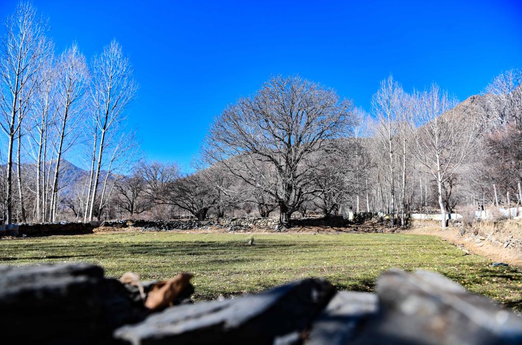 山南市加查縣拉崗村到處可見(jiàn)的核桃樹(shù)(2月1日攝)。新華社記者格桑邊覺(jué) 攝