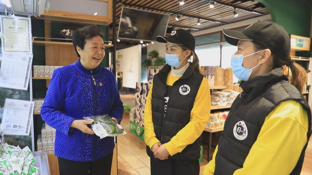 王銀香與五里墩村有機食品體驗店的店員進(jìn)行交流。(受訪(fǎng)者供圖)