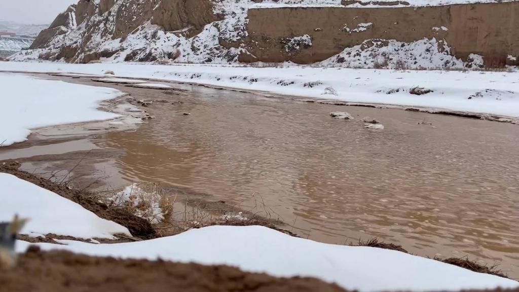 春寒料峭中,一場(chǎng)降雪過(guò)后,甘肅省白銀市會(huì )寧縣銀裝素裹,穿城而過(guò)的祖厲河大部分河面被冰雪覆蓋,少量河水淙淙向北,朝著(zhù)下游的黃河蜿蜒而去。
