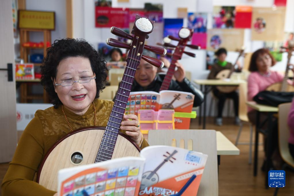在浙江省嘉興市南湖區桂苑社區的老年大學(xué)活動(dòng)室內,老人們在老師的指導下學(xué)琴(2023年3月7日攝)。新華社記者 徐昱 攝