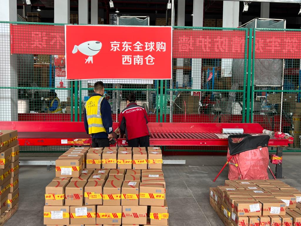 3月21日,記者在位于重慶公路物流基地的京東全球購西南倉看到,來(lái)自世界各地的商品匯集于此,供線(xiàn)上消費者挑選。