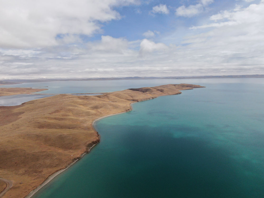 這是2021年5月25日在青海省果洛藏族自治州拍攝的三江源國家公園黃河源園區內的鄂陵湖(無(wú)人機照片)。新華社記者 李占軼 攝