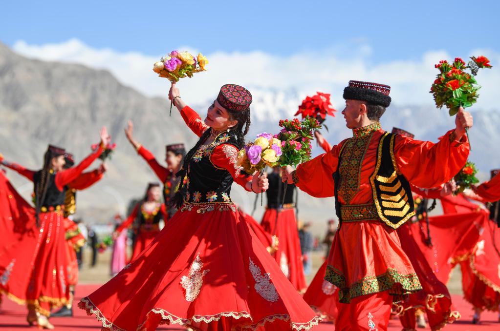? 3月21日,在新疆塔什庫爾干塔吉克自治縣非物質(zhì)文化遺產(chǎn)展示園,歌舞演員為居民和游客表演節目。