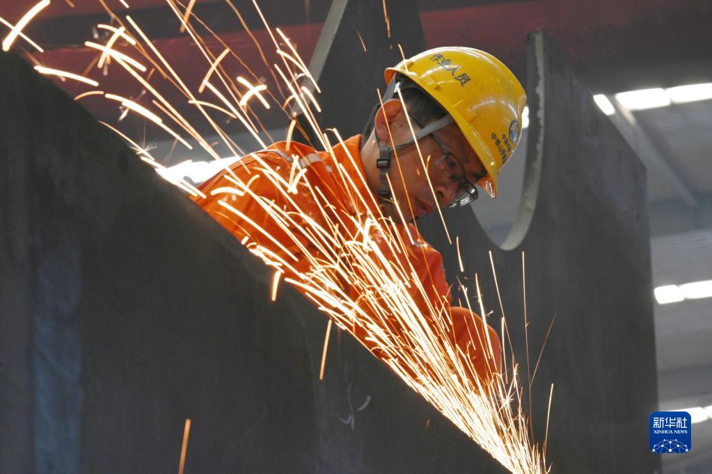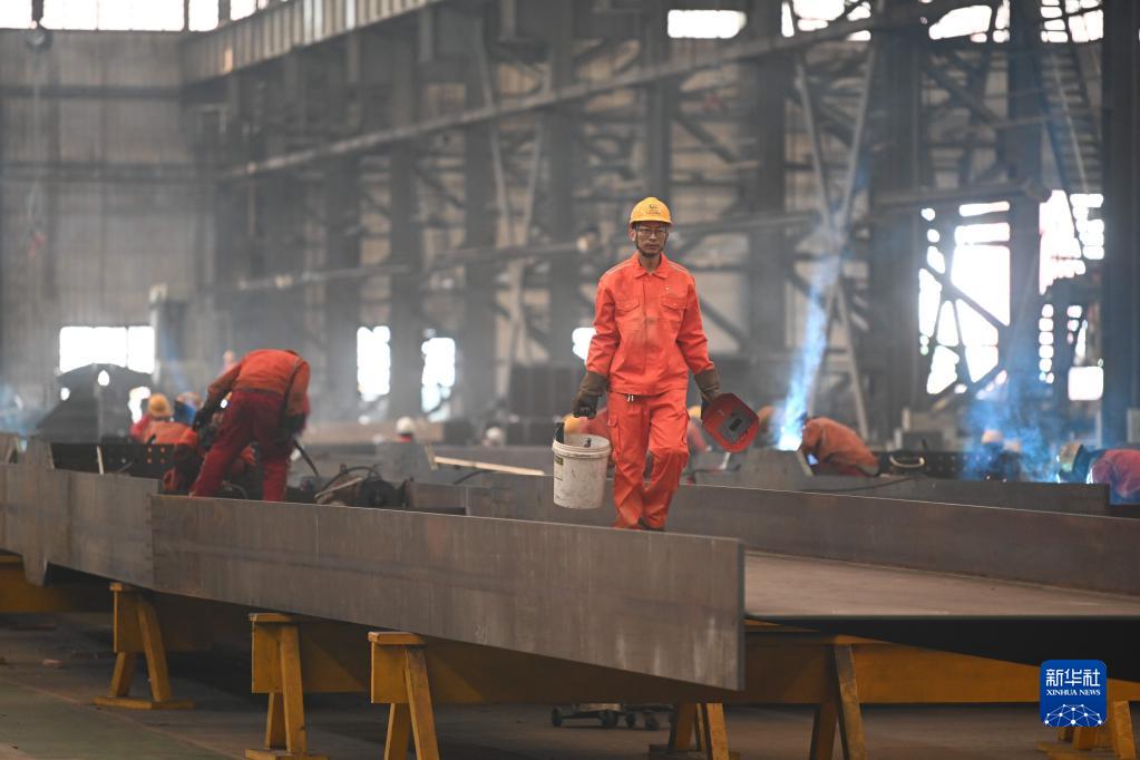 張明在中鐵山橋集團有限公司車(chē)間內工作(4月24日攝)。新華社記者 朱旭東 攝