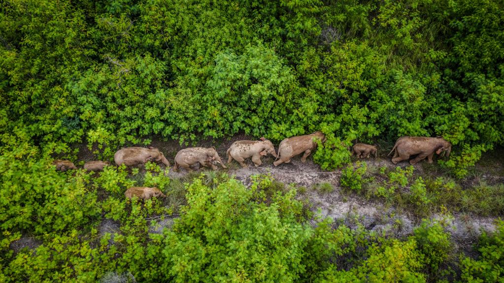 這是2021年8月9日在云南省玉溪市元江縣境內拍攝的象群(無(wú)人機照片)。