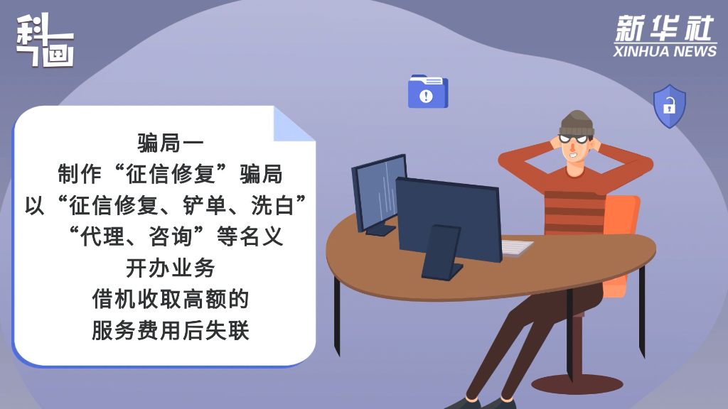 社會(huì )上不斷出現以“征信修復”“征信洗白”“征信鏟單”為誘餌的電信網(wǎng)絡(luò )詐騙,社會(huì )公眾不僅無(wú)法借此刪除不良信用記錄,還存在信息泄露、上當受騙、錢(qián)財損失的風(fēng)險。