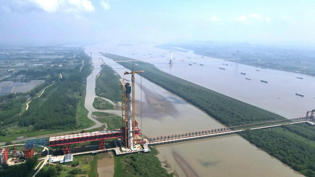 這是馬鞍山公鐵兩用長(cháng)江大橋3號主塔(4月26日攝,無(wú)人機照片)。