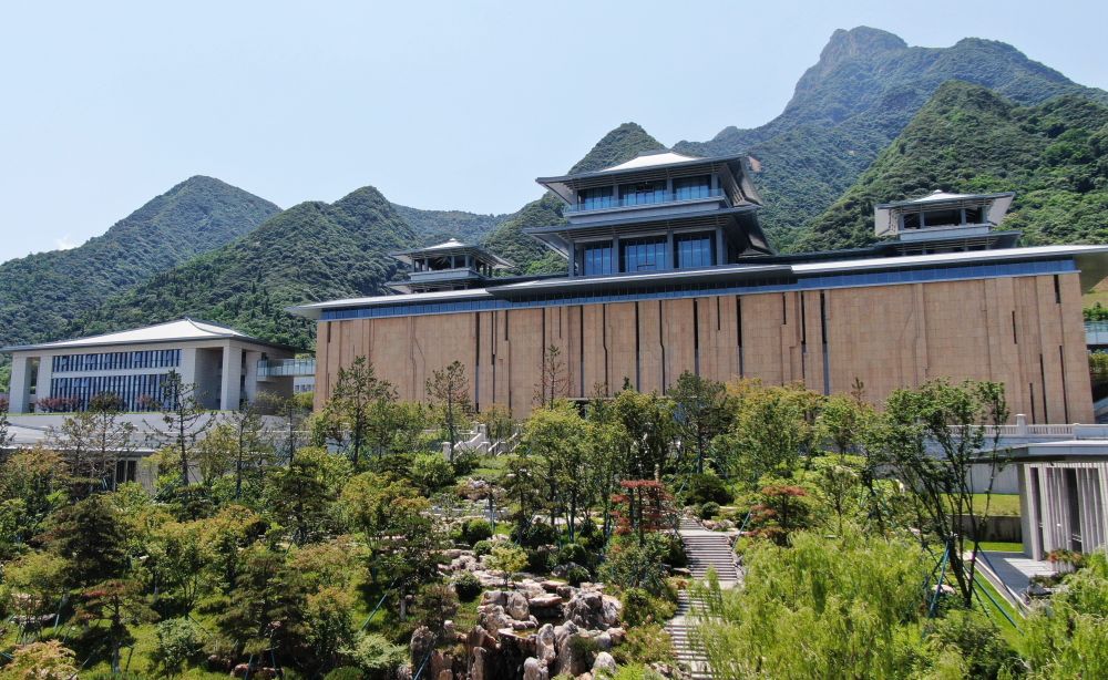 北京中軸線(xiàn)北延、燕山腳下,一片大氣恢弘的建筑群掩映在青山茂林之中,彰顯中華文化神韻。