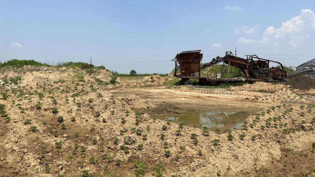耕地表層混雜建筑垃圾、突擊倒土旋耕假裝復墾、常年盜采而成的深坑未作修復……江蘇連云港贛榆區與山東臨沂莒南縣接壤,兩地的柘汪鎮與團林鎮交界處地下富含礦石資源,屢屢發(fā)生破壞耕地盜采砂石的現象。