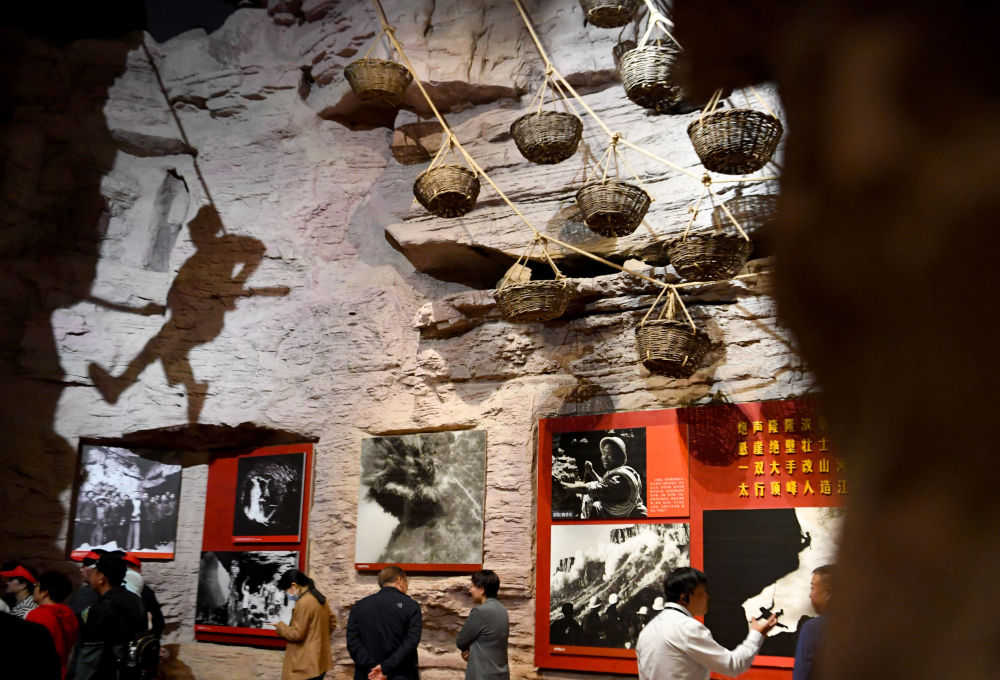 游客在紅旗渠紀念館參觀(guān)(2023年4月27日攝)。新華社記者 郝源 攝