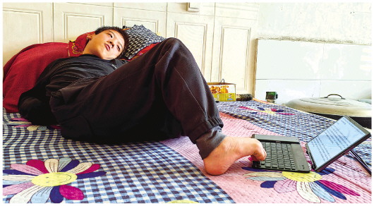 胡少杰在窯洞中寫(xiě)下的這些詩(shī)歌,如綠草紅花一般,在“荒蕪與繁盛之間,記錄了生命的成長(cháng)與倔強”。但對全身只有一只腳能自由活動(dòng)、夜深時(shí)經(jīng)?!熬米u鳴”的胡少杰而言,背后付出的辛酸和努力,卻是常人無(wú)法想象的。