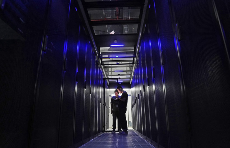 位于南昌經(jīng)濟技術(shù)開(kāi)發(fā)區的中國聯(lián)通智·云數據中心,工作人員在檢查服務(wù)器運行情況 萬(wàn)象/攝