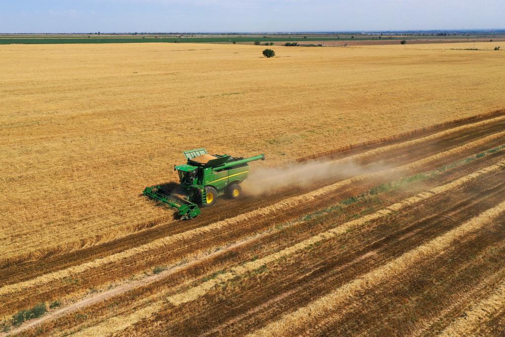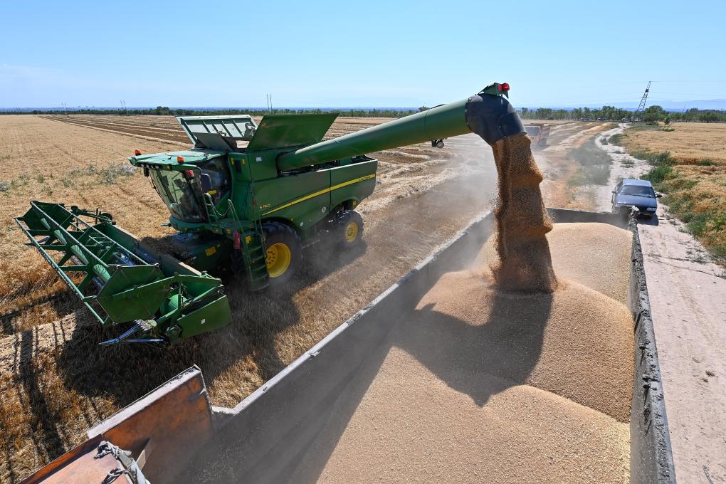 三伏盛夏,40℃的高溫,司張輝的聯(lián)合收割機駕駛室里卻涼風(fēng)習習,分外舒爽。駕駛室外,收割臺螺旋滾筒急速旋轉,一株株麥穗被快速撥倒、收割、脫粒,轉眼間,麥收滿(mǎn)倉。