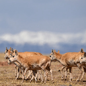5月29日,在青??煽晌骼?,一群雌性待產(chǎn)藏羚羊通過(guò)青藏公路后向卓乃湖行進(jìn)。新華社記者 張宏祥 攝