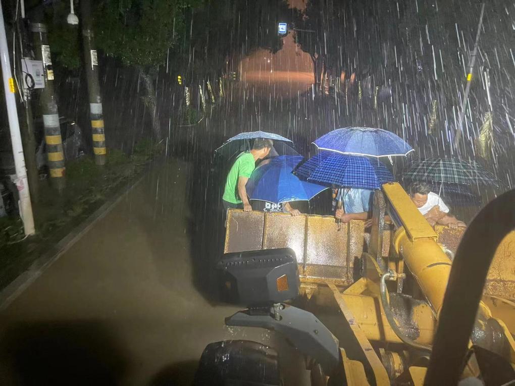 5日晚,福州市蓋山鎮躍進(jìn)村調用鏟車(chē)轉移村民。(受訪(fǎng)者供圖)