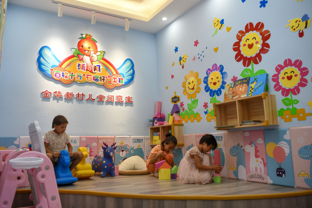 新疆溫宿縣托乎拉鄉金華新村的小朋友在浙江金華市援疆指揮部打造的兒童閱覽室玩耍(2021年7月4日攝)。新華社記者 丁磊 攝