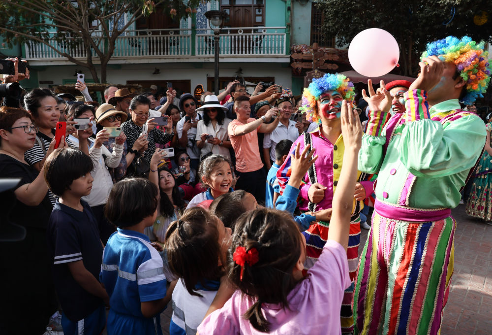 演員與小朋友在新疆喀什古城景區互動(dòng)(2023年9月7日攝)。新華社記者 蘭紅光 攝