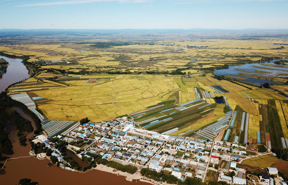 這是2023年9月13日拍攝的黑龍江省寧安市渤海鎮小朱家村附近的稻田(無(wú)人機照片)。新華社記者 王建威 攝