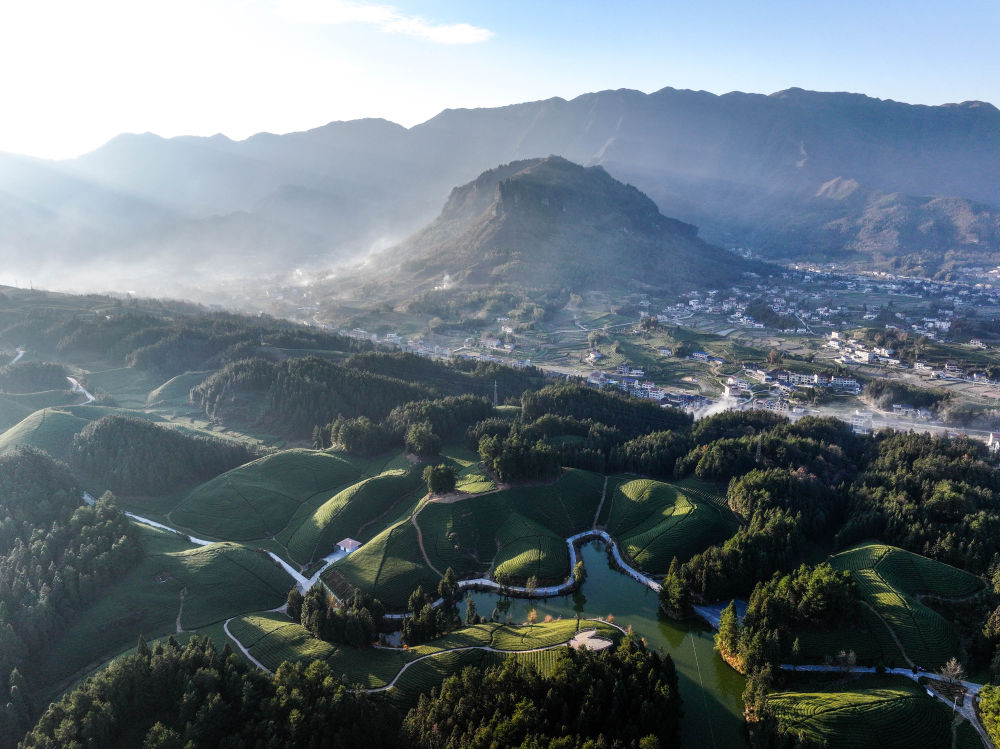 這是2023年12月5日拍攝的湖北省鶴峰縣走馬鎮楊柳池茶園風(fēng)光(無(wú)人機照片)。新華社記者 楊文斌 攝