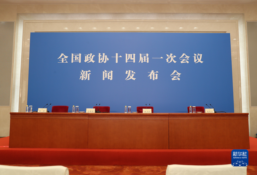 3月3日,全國政協(xié)十四屆一次會(huì )議新聞發(fā)布會(huì )在北京舉行,大會(huì )新聞發(fā)言人郭衛民向中外媒體介紹本次大會(huì )有關(guān)情況并回答記者提問(wèn)。圖為人民大會(huì )堂新聞發(fā)布廳現場(chǎng)。新華網(wǎng)記者 焦鵬 攝