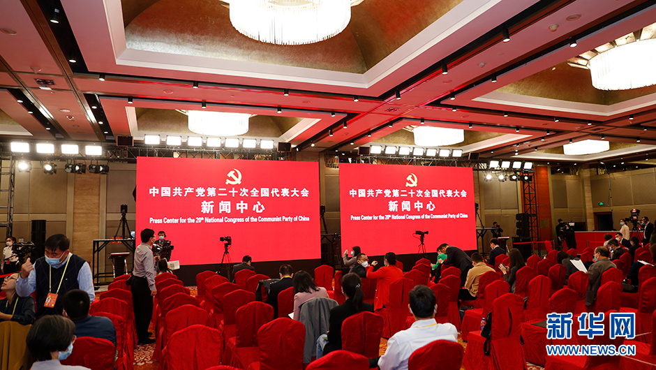 10月19日(星期三)10:00,二十大新聞中心將在梅地亞新聞中心二層新聞發(fā)布廳舉辦第三場(chǎng)記者招待會(huì )。圖為記者招待會(huì )前新世紀日航飯店三層世紀廳分會(huì )場(chǎng)。(新華網(wǎng) 陳杰 攝)