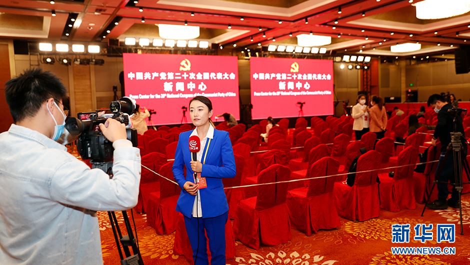 10月19日(星期三)19:30,二十大新聞中心將在梅地亞新聞中心二層新聞發(fā)布廳舉辦第四場(chǎng)集體采訪(fǎng)。圖為集體采訪(fǎng)前新世紀日航飯店三層世紀廳分會(huì )場(chǎng)。(新華網(wǎng) 陳杰 攝)