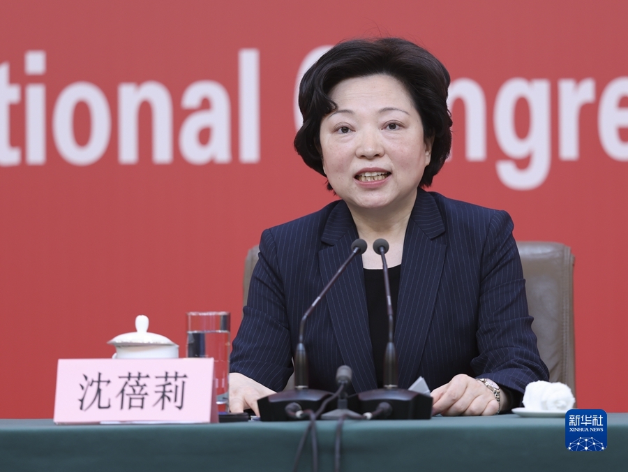 這是沈蓓莉在記者招待會(huì )上。