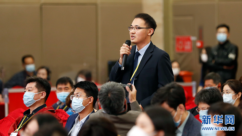 10月21日(星期五)10:00,二十大新聞中心舉辦第五場(chǎng)記者招待會(huì )。圖為大眾日報記者在分會(huì )場(chǎng)提問(wèn)。(新華網(wǎng) 陳杰 攝)