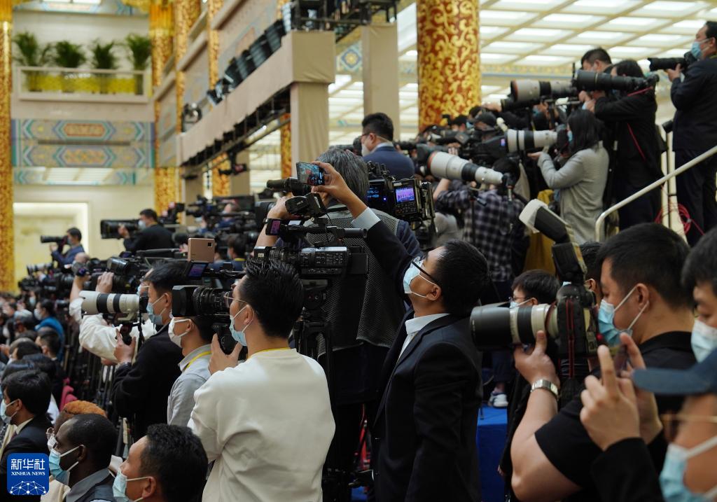 10月23日,中外記者在北京人民大會(huì )堂報道新一屆中共中央政治局常委首次集體亮相。新華社記者 才揚 攝