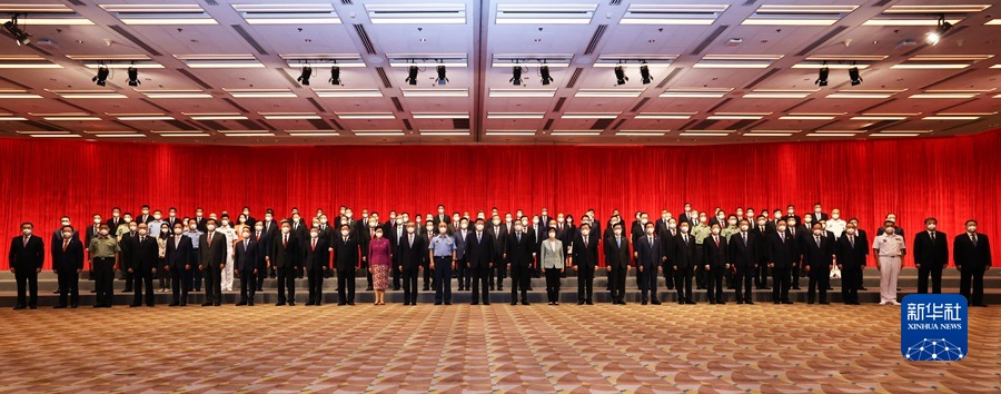 6月30日下午,國家主席習近平在香港會(huì )見(jiàn)香港特別行政區行政、立法、司法機關(guān)負責人。新華社記者 鞠鵬 攝