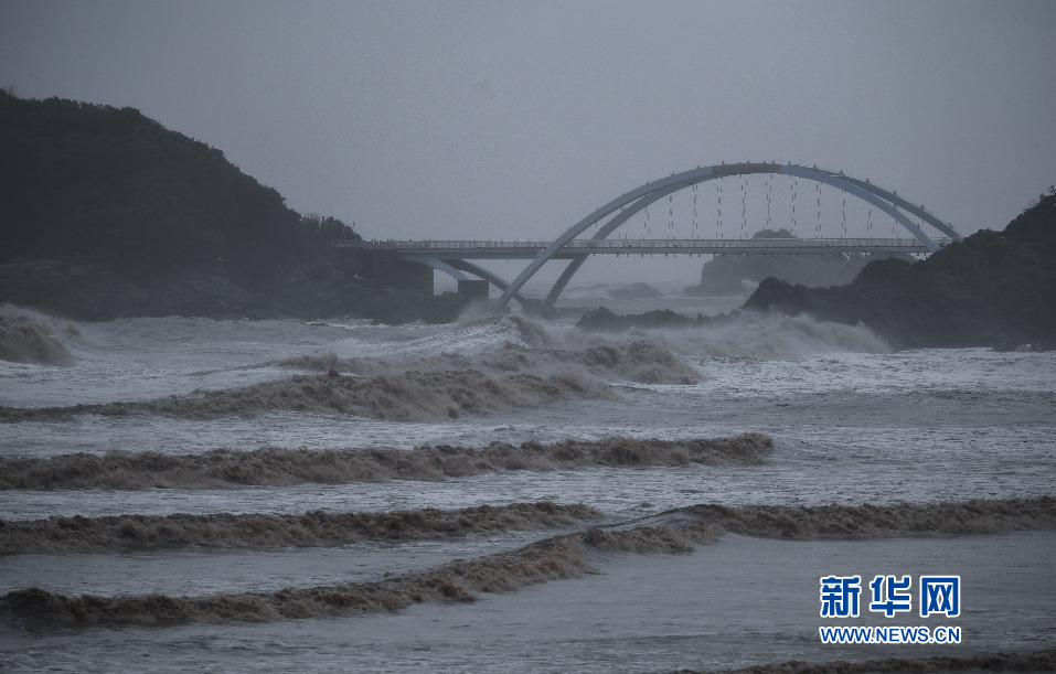 9月13日,浙江舟山朱家尖東沙景區附近的海面上風(fēng)急浪大。 新華社記者 徐昱 攝