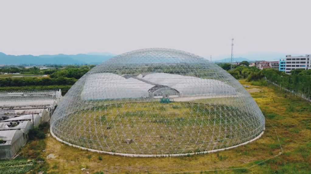 在浙江麗水,一座座形狀各異的溫室大棚里,瓜果和蔬菜栽種在離地幾米的霧培立柱上。