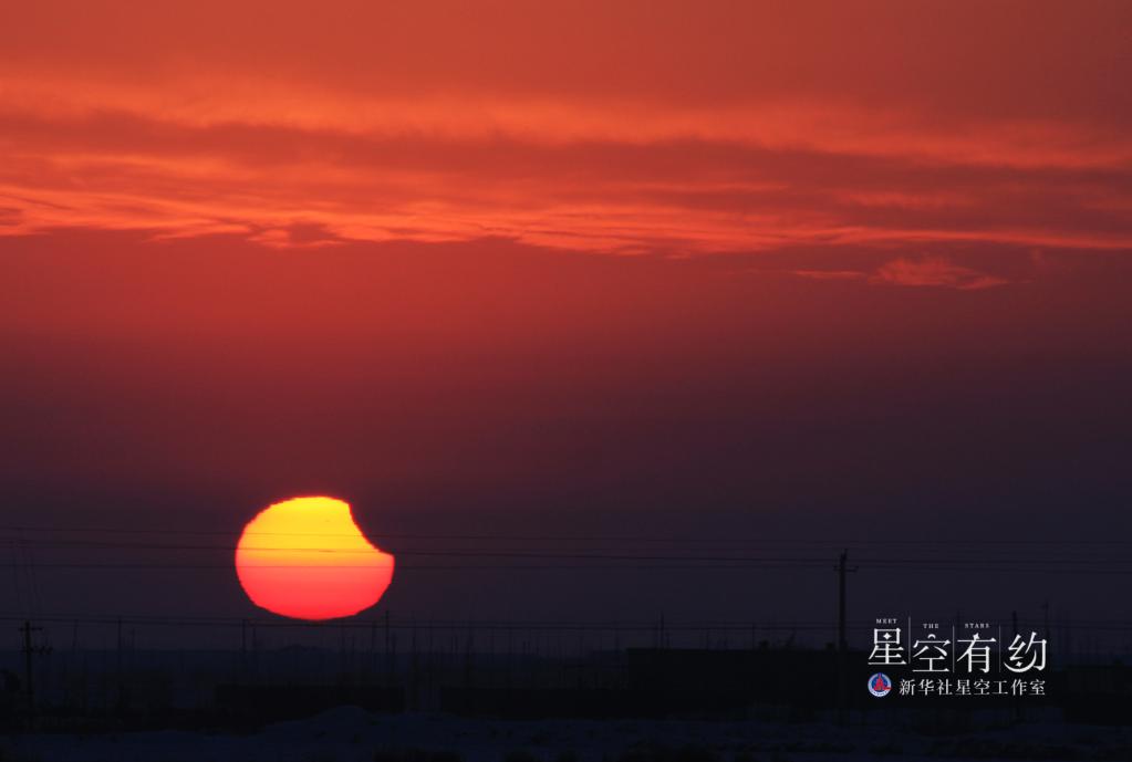 2011年1月4日在新疆哈密拍攝的“帶食日落”。新華社發(fā)(曹新加 攝)