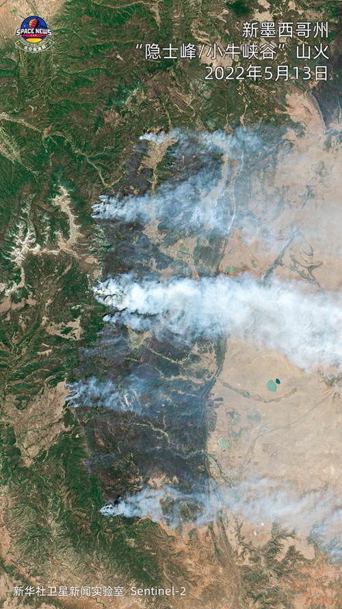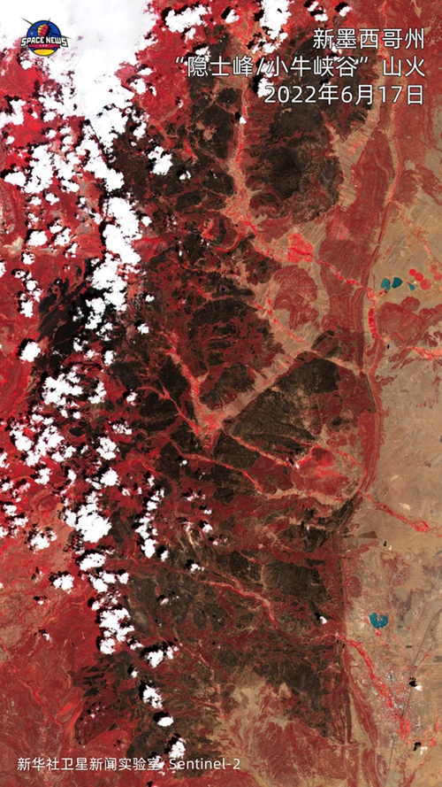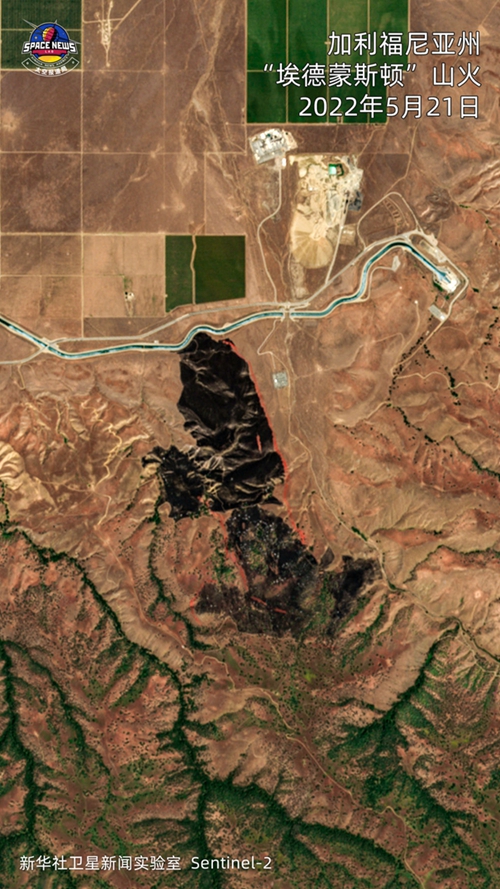 美國林業(yè)局每年人工引發(fā)約4500次山火,但2022年兩起此類(lèi)作業(yè)失控,引發(fā)大規模山火,“隱士峰”山火和“小牛峽谷”山火合并后,成為該州歷史上最大規模山火,合計燒毀1300平方公里,面積相當于整個(gè)洛杉磯。衛星影像分析顯示,火災延燒的黑色區域觸目驚心。