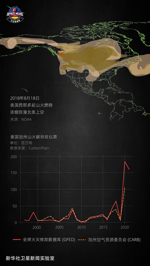 利用NASA全球火災排放數據庫開(kāi)發(fā)的近實(shí)時(shí)衛星監測技術(shù),并參照加州空氣資源委員會(huì )公布的野火排放數據,過(guò)去兩年加州二氧化碳排放量處于近20年來(lái)最高水平。2021年,加州野火釋放了1.61億噸二氧化碳,相當于該州2020年排放清單的40%左右。