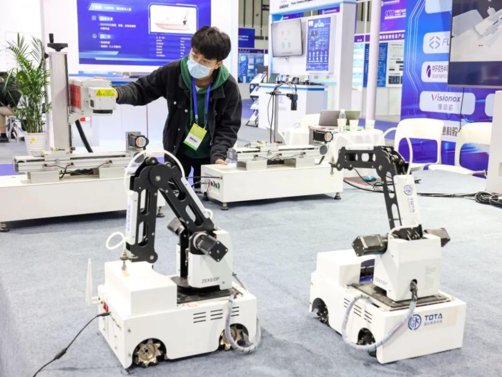 一名企業(yè)工作人員在展會(huì )上演示智能制造裝備。(受訪(fǎng)者供圖)
