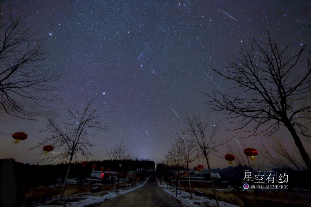 北京市海淀區中關(guān)村第二小學(xué)天文教師朱戈雅2015年12月14日在北京房山花臺風(fēng)景區拍攝的雙子座流星雨(多張疊加)。(本人供圖)