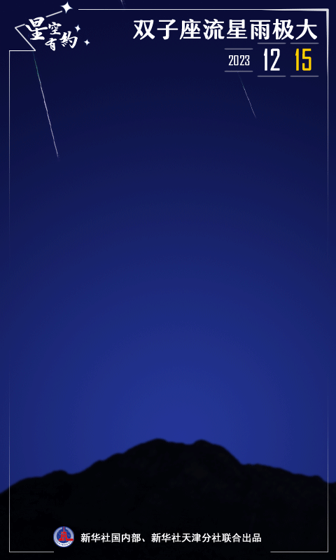 新華社天津12月12日電(記者周潤?。┙衲甓熳詈每吹牧餍怯昙磳㈤W亮登場(chǎng)。天文科普專(zhuān)家介紹,雙子座流星雨將于12月15日凌晨迎來(lái)極大,無(wú)月光影響,喜歡流星雨的公眾可于14日晚至15日晨進(jìn)行觀(guān)測。