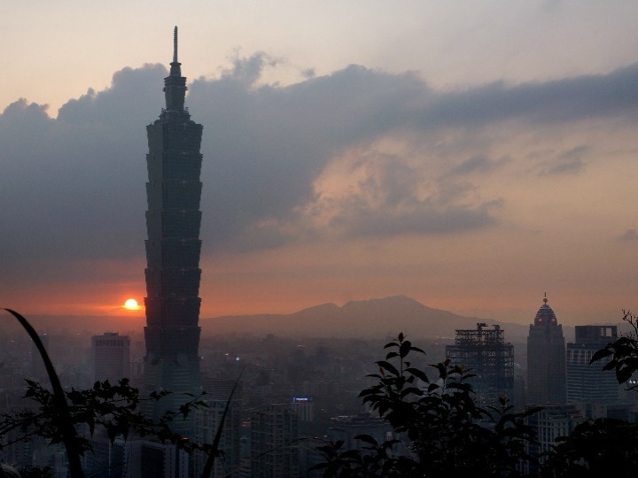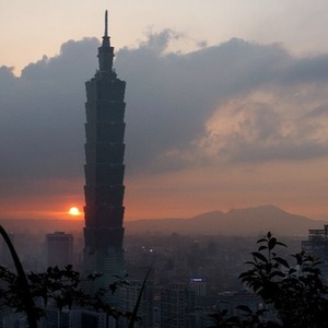 夕陽(yáng)映照下的臺北101大樓。新華社記者 陶明 攝